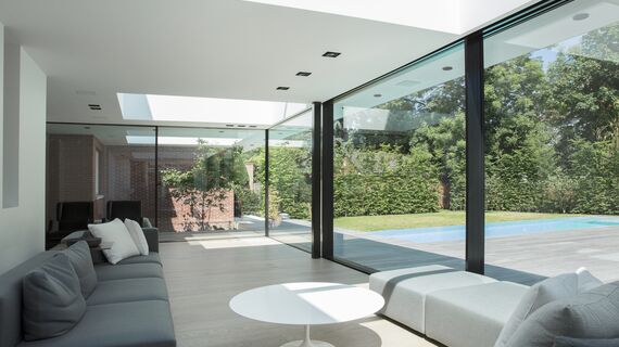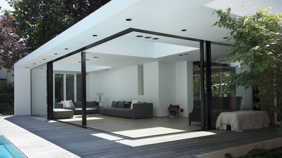 Bu tamamen şeffaf ve ulaşılabilir sürme sistemi, evin içini kesintisiz bir şekilde dışarıya taşır. Minimum görünür profil yüzeyine sahip olmasına rağmen, sistemin yüksek direnci, Hi-Finity’nin 500 kg’a kadar geniş cam paneli taşınmasına olanak verir.